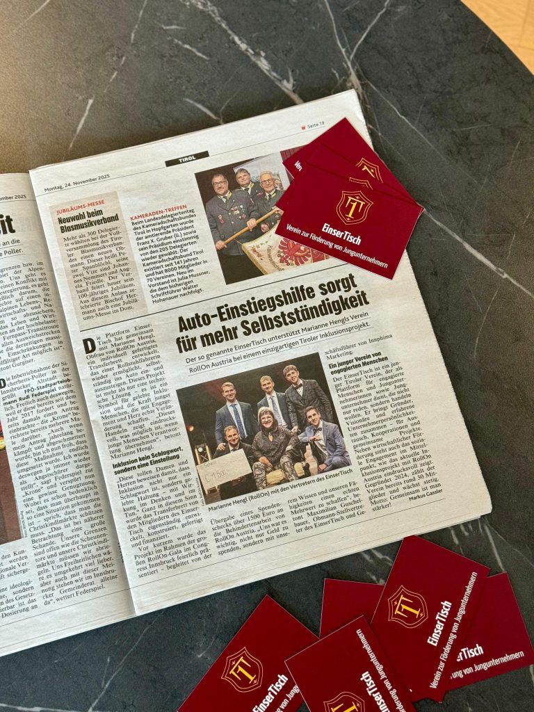 1. Jahreshauptversammlung des EinserTisch – Ein Rückblick auf ein starkes erstes Jahr Am 11. November 2025 fand die 1. Jahreshauptversammlung des EinserTisch im Landgasthof Bogner in Absam statt. Zahlreiche Mitglieder und Expertenmitglieder folgten der Einladung, um gemeinsam auf das erste Vereinsjahr zurückzublicken und einen Ausblick auf die kommenden Projekte zu wagen. Nach der offiziellen Eröffnung durch Obmann Luca […]